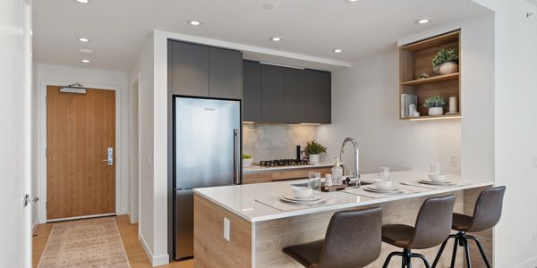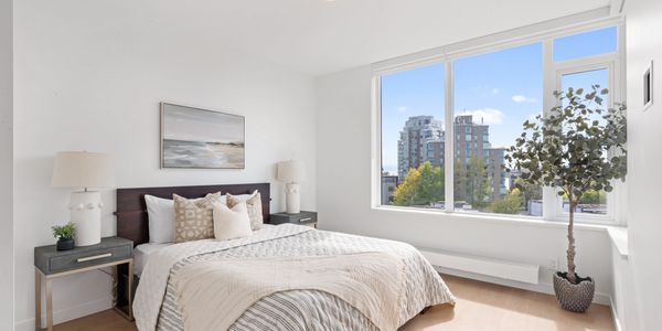 The building offers a world-class gym, rooftop patio with gas fireplace, 3 BBQs, a social lounge, pet wash, bike repair & storage rooms. Includes 1 secure parking spot with EV charging, 1 storage locker, BBQs allowed, & 2 dogs of any size.